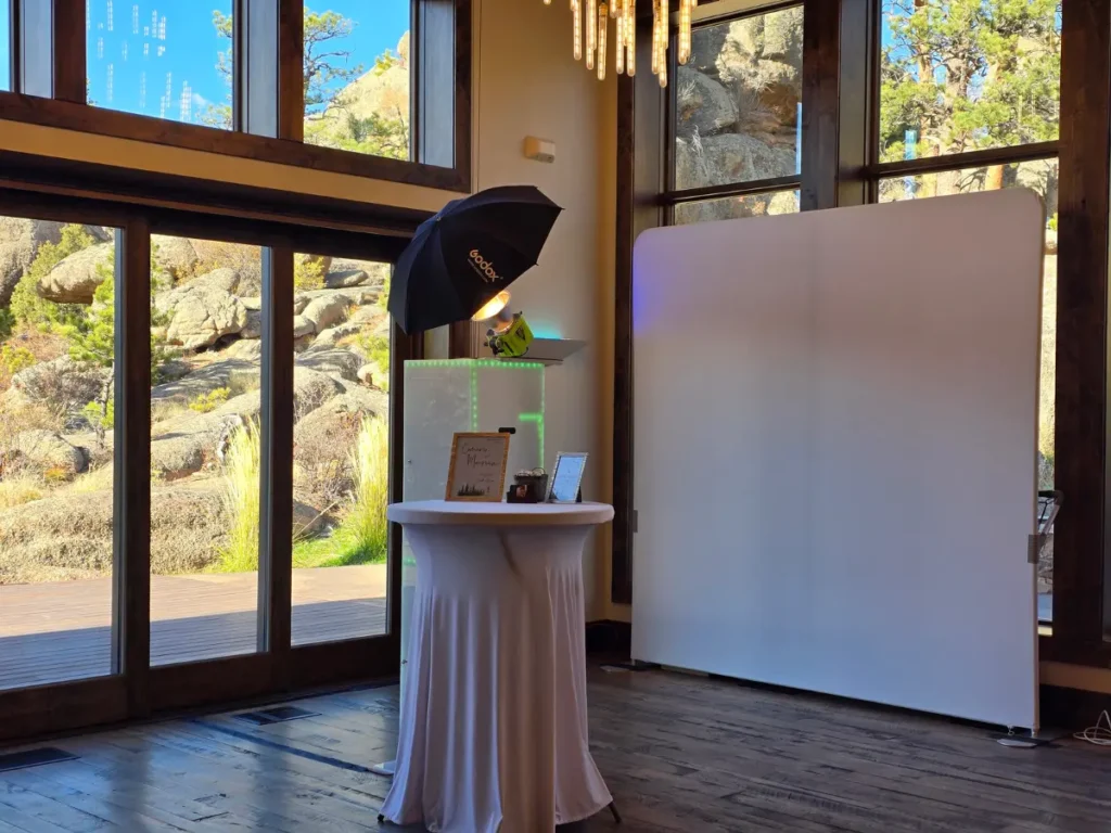 Black Canyon Inn in Estes Park, Colorado offers dramatic mountain views paired with elegant indoor reception spaces — making it an ideal setting for a professional photo booth installation.